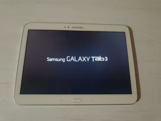 Tablet Samsung Galaxy Tab 3 en color blanco. - Pantalla de 10.1 pulgadas. - Conectividad Wi-Fi. - Cámara trasera y frontal. Enciende y algunas aplicaciones se pueden utilizar, pero no deja entrar en la Play Store para actualizar. Se puede utilizar para piezas o por si alguien la puede arreglar.