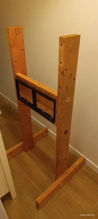 Soporte de madera para monitor, ideal para configuraciones de simulador simracing y cockpits. - Construcción robusta en madera. - Diseño adaptable a diferentes monitores.