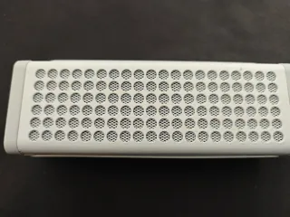 Altavoz portátil Yamaha con un diseño moderno y elegante. - Rejilla frontal con patrón de puntos. - Acabado en dos tonos.