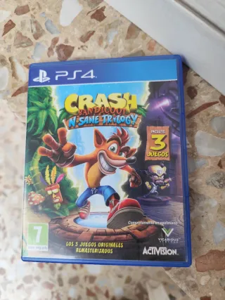 Juego Crash Bandicoot N'Sane Trilogy para PlayStation 4. Esta en perfecto estado, usado muy poco. - Incluye los 3 juegos originales remasterizados. - Completamente en castellano.