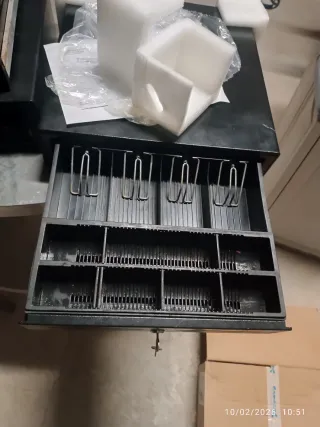 Cajón organizador de efectivo con compartimentos para monedas y billetes. - Bandeja extraíble. - Cierre con llave.