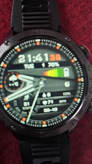 Reloj inteligente con un diseño moderno y deportivo. - Bisel con detalles naranjas. - Correa negra. - Pantalla digital con múltiples funciones. - Bateria muy potente - no #garmin #suunto # polar #fenix
