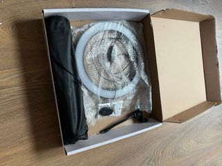 Aro de luz LED de la marca BLOOM WIN, ideal para fotografía y video. Incluye trípode ajustable y mando a distancia. - Aro de luz regulable. - 3 colores de iluminación. - 3 intensidad de luz - soporte para el móvil - Trípode ajustable de 1-1/3 a 4 pies. - Entrada USB. - última foto medidas