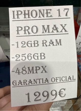 Teléfono móvil iPhone 17 Pro Max en color azul.Nuevo precintado - Modelo: iPhone 17 Pro Max - Color: Azul Garantia de 2 años Somos tienda en C/San Rafel 35 Olot