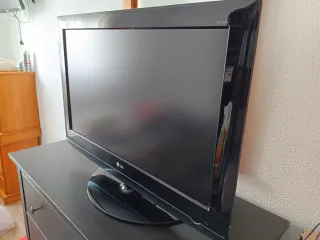 Televisor LG en color negro. - Pantalla plana. - Diseño moderno.