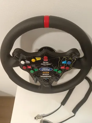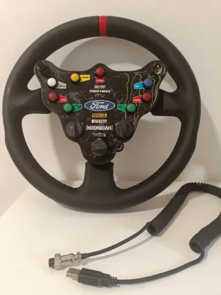 Volante para simracing, sobretodo para Rally. 33 cm diámetro El plástico de la palanca de la derecha está roto, pero funciona perfectamente.