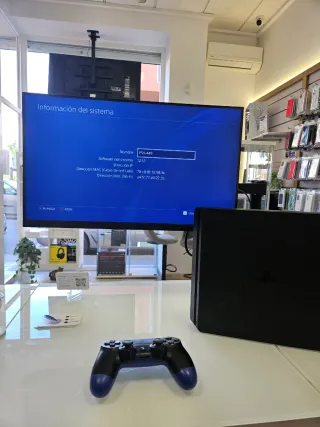 Consola PlayStation 4 en color negro. - Incluye dos mandos DualShock 4. - Cable de alimentación. - Cable HDMI. - Cable micro USB para carga de mandos. A uno de los mandos se le cayó la cubierta del joystick izquierdo. Funciona perfectamente. He subido foto detalle. Puedo incluir juegos de mi perfil más baratos junto a la consola.