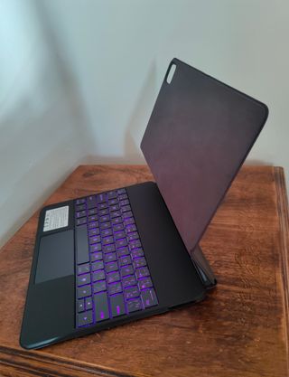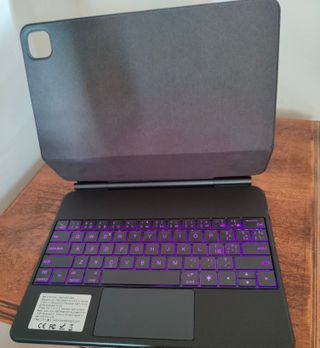 Funda magnética con teclado retroiluminado para iPad Pro 12.9 o iPad Air 13. - Teclado con retroiluminación púrpura. - Trackpad integrado. - Diseño elegante y funcional.