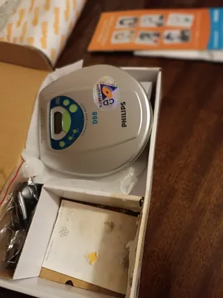 Reproductor de CD portátil de la marca Philips. Ideal para escuchar tu música favorita. - Diseño compacto y ligero. - Función Dynamic Bass Boost (DBB). - Compatible con CD ReWriteable (CD-RW). - Pantalla LCD. - Incluye auriculares.