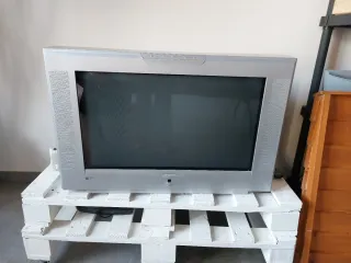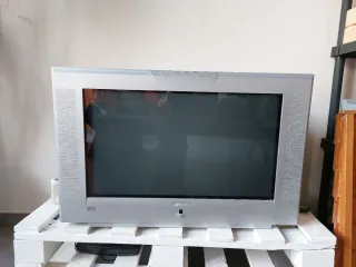 Televisor de la marca Firstline con un diseño moderno. - Color plateado y negro. - Pantalla de tubo. - Altavoces integrados.