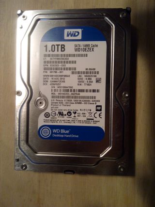 Disco duro interno WD Blue de 1TB. - Capacidad: 1TB - Interfaz: SATA - Caché: 64MB - Modelo: WD10EZEX - Fabricado en Tailandia No negociable.