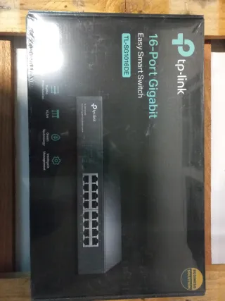 A estrenar, sin abrir. Conserva el precinto. Vendo switch TP-Link SG1016D de 16 puertos Gigabit Ethernet, ideal para redes domésticas, oficinas pequeñas o entornos profesionales que requieren una conectividad rápida y estable. Especificaciones: • 16 puertos RJ45 10/100/1000 Mbps con auto negociación. • Tecnología Green Ethernet para ahorro de energía. • Funcionamiento sin ventilador: totalmente silencioso. • Plug & Play, sin necesidad de configuración. • Carcasa metálica compacta, para sobremesa o montaje en rack (kit incluido si aplica). • Capacidad de switching: 32 Gbps.