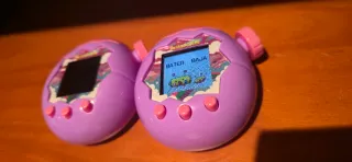 Dos Tamagotchi Paradise en color lila. - Diseño ovalado. - Pantalla digital. - Botones frontales.