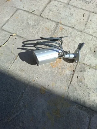 Cámara de vigilancia plateada con infrarrojos, ideal para exteriores. Su diseño permite una fácil instalación. - Cuerpo metálico resistente. - Soporte ajustable.