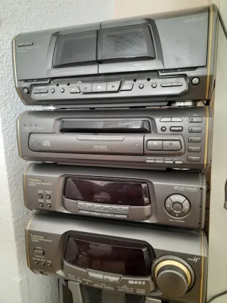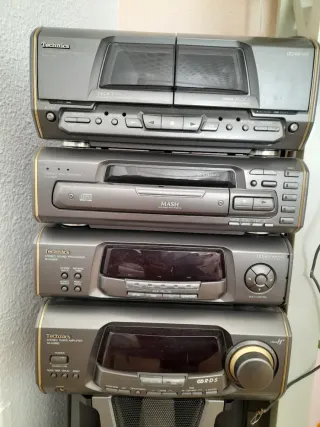 Sistema de sonido Technics SC-EH600 con componentes apilables. - Doble pletina de casete. - Reproductor de 5 CD - Radio - Procesador de sonido. - Amplificador de sintonizador.