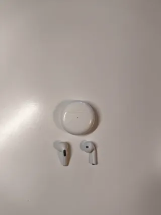 Auriculares inalámbricos en color blanco, con bluetooth. - Diseño moderno y ergonómico. - Estuche de carga compacto. - Como nuevos, no se han usado.