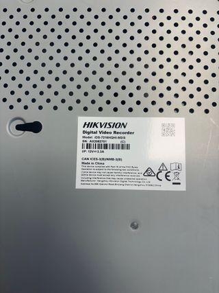Grabador de vídeo digital HIKVISION. - Modelo: iDS-7216HQHI-M2/S - SN: AX2082701 - Entrada de alimentación: 12V 3.3A - incluye disco duro purple 2TB