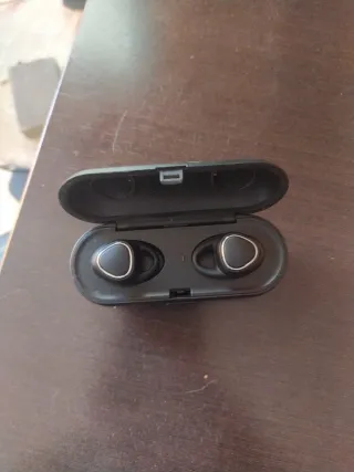 Auriculares inalámbricos con conexión Bluetooth. Incluyen su estuche de carga. - Diseño ergonómico. - Acabado en negro con detalles plateados.