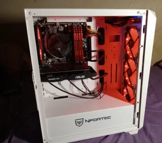 PC gaming listo para usar con Intel Core i5-4460, 16 GB RAM y gráfica ASUS Cerberus GTX 1050 Ti 4 GB, ideal para jugar en Full HD. Incluye SSD de 240 GB + HDD de 500 GB para rapidez y almacenamiento. Caja Nfortec con 4 ventiladores RGB. Windows 10 Pro recién instalado y drivers actualizados. Funciona perfectamente. "La fuente puede emitir un leve pitido en reposo" (algo común), sin afectar al rendimiento. Cuando se apaga la fuente el ruido desaparece. Hago el envío bien embalado y protegido para que llegue intacto. Incluye cable de fuente.