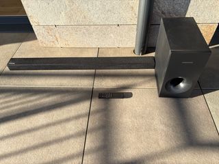 Samsung HW-K335 Canales de salida de audio: 2.1 canales Potencia estimada RMS: 130 W Decodificadores incorporados: DTS Digital Surround Cantidad de modos de sonido envolvente: 2 Tecnología de conectividad: Inalámbrico y alámbrico Bluetooth, Audio digital, entrada óptica, Entrada de audio.. Cargador incluido Cable óptico incluido. En perfecto estado