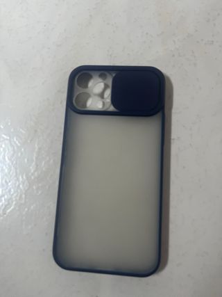 Funda protectora para iPhone 12 Pro. - Diseño con tapa para las cámaras. - Material translúcido. - Borde de color azul.
