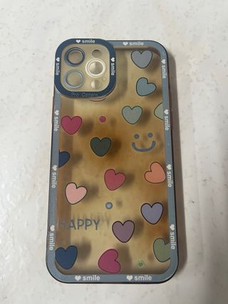 Funda protectora para iPhone 12 Pro con un diseño divertido y colorido. - Estampado de corazones y caritas sonrientes. - Acabado translúcido. - Borde protector.