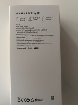 Teléfono móvil Samsung A01. - Diseño moderno y compacto. - Pantalla nítida para una visualización clara.