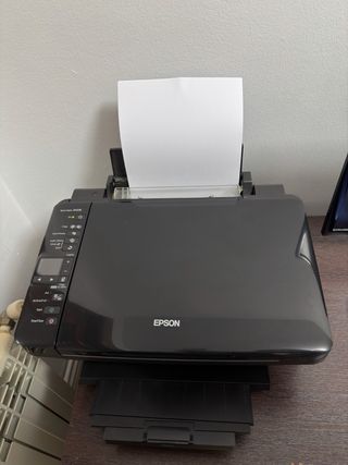 Impresora multifunción Epson Stylus SX218 en color negro. Ideal para el hogar o la oficina. - Escanea, copia e imprime. - Bandeja de papel frontal. - Panel de control intuitivo. - Con señales de su uso y de los años. - Se incluyen tintas nuevas (varios colores) - Se vende por cambio - Se incluyen cables
