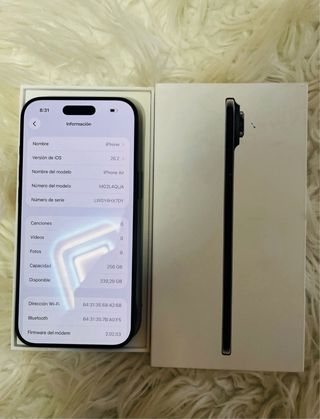 Vendo iPhone Air de 256Gb con 100% (9 ciclos ) batería en color blanco, móvil en perfecto estado , ni el más mínimo detalle, mejor ver y probar en persona. Acepto iphone como parte de pago a partir del iphone15 GENTE SERIA POR FAVOR NO NEGOCIABLE
