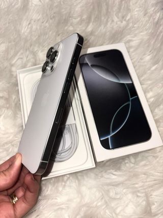 Teléfono móvil iPhone 16 Pro Max. - Nuevo activado hace apenas 3 meses. - Batería al 100% - Unos 50 ciclos de carga - Nuevísimo - Se entrega con su caja y cable de carga - Pantalla de alta resolución. - Diseño elegante y moderno. - Cámara avanzada para fotos y vídeos.