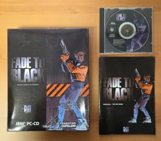 Fade to Black. Primera edición española para pc. the dig, aventura gráfica, full throttle, monkey island, another world, flashback, shooter, sam y max, fate of atlantis, castellano, español, outlaws, lucasarts, erbe, ibm, indiana jones, la última cruzada, star wars, lucasarts, erbe, broken sword, bigbox, big box, juego ordenador, loom, original, clásicos, colección, floppy disk, maniac mansion, day of the tentacle, grim fandango, manual, cd.
