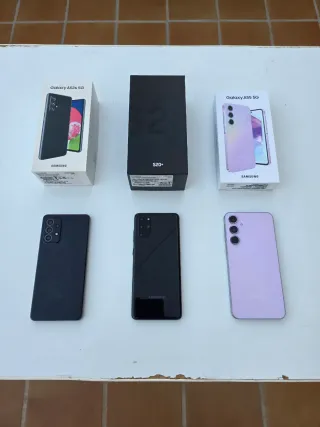 Teléfono móvil Samsung Galaxy A55 5G con 256GB de almacenamiento. Teléfono móvil Samsung Galaxy S20+ 128 Gb con 128GB de almacenamiento. Teléfono móvil Samsung Galaxy A52s 5G con 128GB de almacenamiento. - Color Awesome Violet. - Color negro. - Color negro. En su caja, con accesorios originales y fundas. P.V.P. nuevo: 529€ P.V.P. nuevo: 1.009€ P.V.P. nuevo: 449€ Por separado sube el precio, No Negociable.