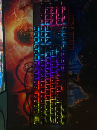 Teclado mecánico para gaming con retroiluminación RGB personalizable. Diseño compacto y robusto. ✅Teclas con iluminación LED. ✅Diseño QWERTY español. ✅Conexión USB. ✅Mecanico Hasta 10 combinaciones de RGB
