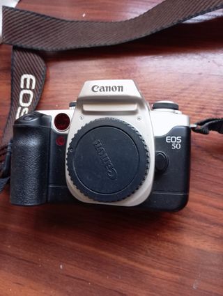 Vendo Canon EOS 50, cámara réflex analógica de 35 mm en perfecto funcionamiento. Dispara correctamente, avance y rebobinado del carrete OK, obturador y fotómetro funcionan, autofocus operativo. Buen estado estético para su edad (ver fotos). Compatible con objetivos Canon EF. Ideal para fotografía analógica, tanto para empezar como para usuarios de Canon. Incluye funda/bolsa de transporte y correa. Se vende solo el cuerpo (sin objetivo). Entrega en mano o envío por Wallapop. ESTÁ EN ALICANTE