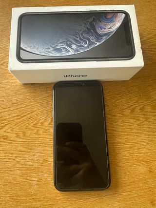 Teléfono móvil iPhone XR en color negro.Esta bastante bien el teléfono lo vendo por cambio a uno superior. Se entrega con protector de pantalla antiespia , caja y funda negra . - Pantalla de 6.1 pulgadas. - Cámara trasera de 12 MP. - Chip A12 Bionic. - 76% 🔋