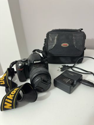 Se vende cámara Nikon en color negro, junto con sus accesorios. - Correa para el cuello con logo de Nikon. - Objetivo 18-55mm - Bolsa de transporte. - Cargador de batería Nikon. - Batería Nikon