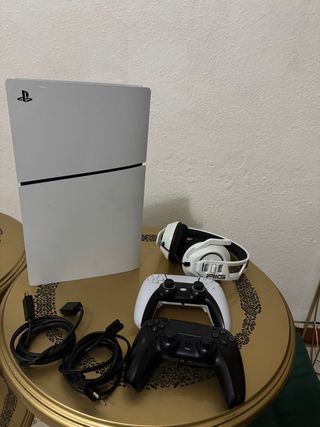 Consola de videojuegos Playstation 5. - Incluye dos mandos ,1 DualSense i el otro es falso - Auriculares RIG blancos. - Cables de conexión. -Doy pantalla - Tambien caja de la pley,mando,cascos