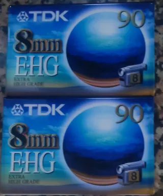 Lote de dos cintas de video de 8mm, una de TDK EHG de 90 minutos y otra Sony de 60 minutos. - Cinta TDK EHG de 90 minutos. - Cinta Sony de 60 minutos. - Formato Video 8.