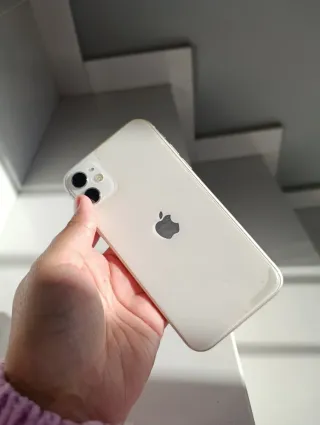 Teléfono móvil iPhone 11 con 64 GB de almacenamiento. - Color blanco. - Capacidad de 32 GB. La batería está a un 75% No tiene abolladuras y en el vidrio de atras está sin rayones ya que tenía un plástico que lo cubría.