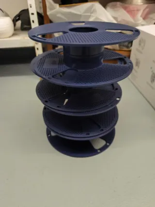 Bobina de plástico para rollo de filamento. - Material: Plástico. - Diseño perforado. - Color azul oscuro.
