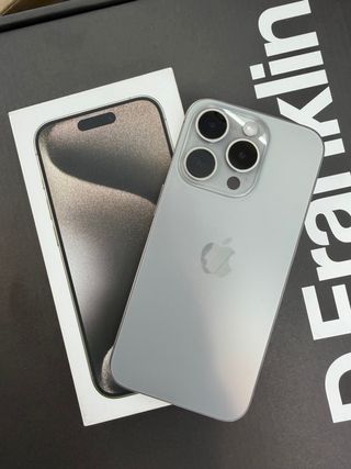 iPhone 15 Pro con 256GB de almacenamiento en color gris. Esta en muy buen estado no tiene ningun raya, todo funciona perfecto y todo original con su caja💯✅