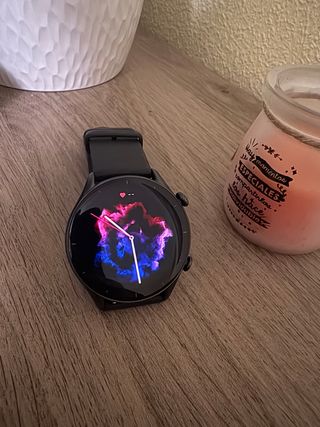 Reloj inteligente Amazfit GTR 3 en color negro. Diseño elegante y moderno. - Pantalla a color vibrante. - Correa cómoda y ajustable. Comprado en 2025 en Amazon y con muy poco uso.