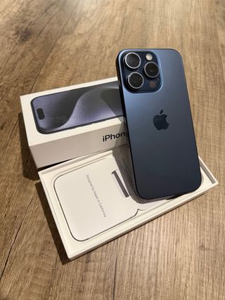iPhone 15 Pro con acabado en azul marino y 512 GB de almacenamiento. - Diseño elegante y moderno. - Pantalla de alta resolución. - Cámara avanzada para fotos y vídeos de calidad. -Como nuevo -Incluye protectores de pantalla y fundas sin usar