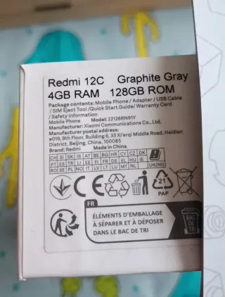 Teléfono móvil Xiaomi Redmi 12C en color gris grafito. - 4GB de RAM - 128 GB de ROM Nuevo, sin usar, con el precinto en la caja