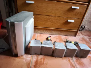Sistema de altavoces JVC. viejos - Incluye un altavoz principal y cinco satélites.