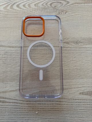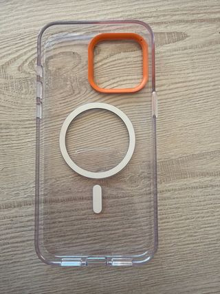 Funda protectora transparente para iPhone 15 Pro Max. - Diseño claro que permite ver el color original del teléfono. - Incorpora anillo magnético compatible con MagSafe. - Borde reforzado para mayor protección.