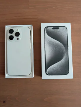 Este iPhone 15 Pro en color blanco tiene una capacidad de almacenamiento de 128GB. Con muchas fundas. Le queda garantia hasta febrero de 2027 - Diseño elegante y moderno. - Acabado en blanco.