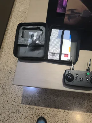 Dron con cámara en color negro y gris. Incluye control remoto y funda de transporte. - Cámara integrada. - Mando a distancia. - Estuche de protección.