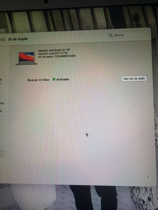 MacBook Air de 13 pulgadas en color plata. Modelo con sistema operativo macOS 11.7.10. - Modelo: MacBook Air 13 - Versión: macOS 11.7.10 - Nº de serie: C02NN0KFG086 - Buscar mi Mac: Activado
