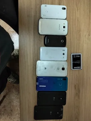 Lote de varios teléfonos móviles para piezas o reparación. Incluye dispositivos de diferentes marcas y modelos. - Los lg funcionan pero la batería está muerta. - Teléfonos de varios colores. - Ideales para técnicos o aficionados a la reparación de móviles.